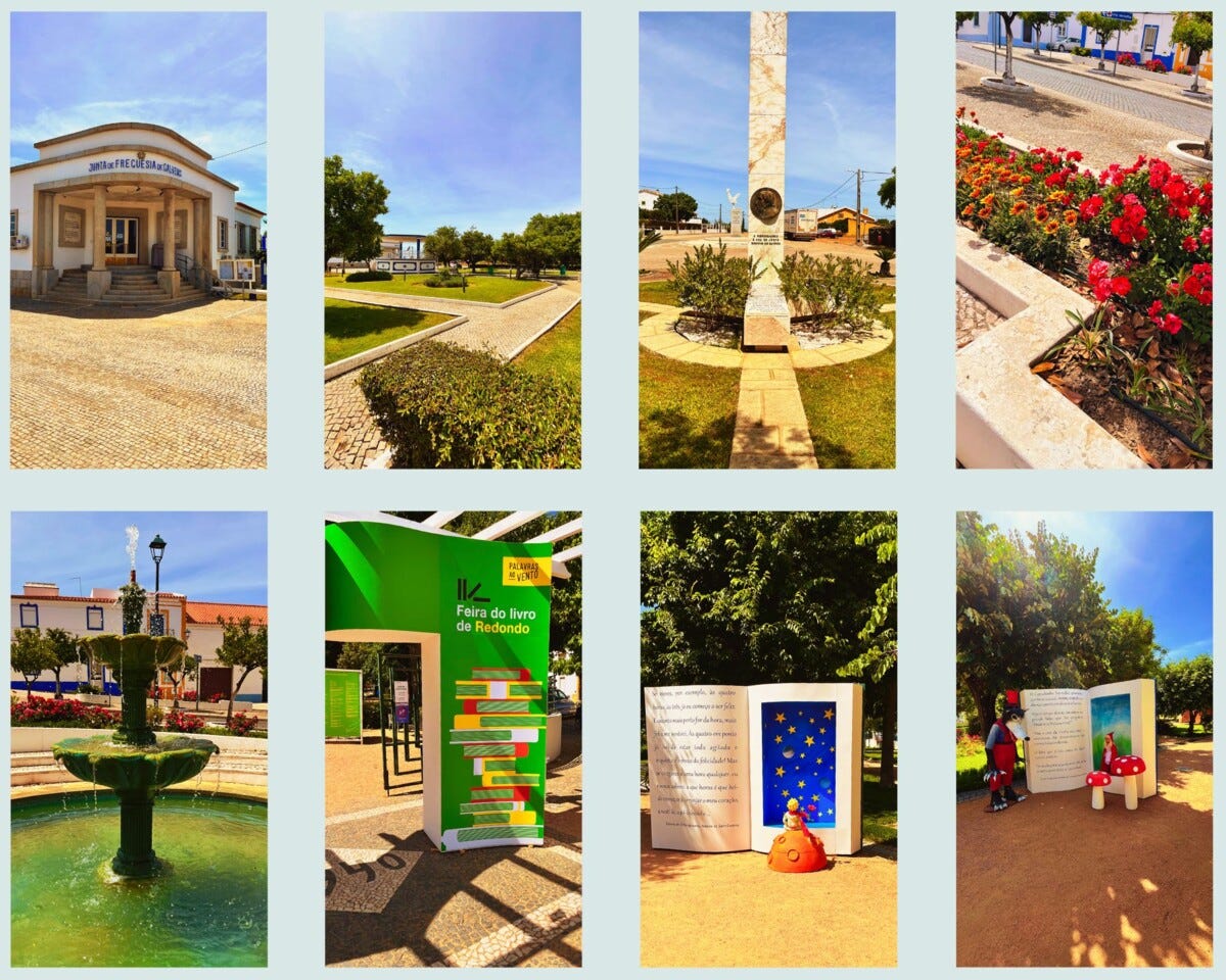 Deixando Galveias íamos em direcção a Redondo quando a tarde se instalava. Pelas duas da tarde estava um sol abrasador ainda no início de Maio, abrasador para quem é de frias terras e está habituado a outros sóis. Chegámos ao Alentejo e percebemos um Sol igualmente português, mas alentejano, não compassivo a sensibilidades térmicas. Pela nacional 224 esticámos pois as pernas em Galveias, uma terra pequenina e simpática, vislumbrar a pequenina terra de José Luís Peixoto, uma realidade tão distinta do Porto onde nasci. Embora não tenha particular interesse na obra de Peixoto, já o li e provavelmente lerei, parece-me ele ser dos poucos contemporâneos onde a escrita não brota do génio, porque génios não há, mas tem honestidade. Longo parecia o dia. Já em Redondo estávamos esfaimados, queríamos almoçar e a hora não ajudava. Encontrámos um restaurante ainda a servir e embora eu não tenha ficado muito contente com o meu arroz de pato, dadas as circunstâncias não me podia queixar! A sala era fresca e escura, algo contrastante com o exterior. Almoçámos e só pensávamos em chegar ao hotel. Rapidamente explorámos o centro de Redondo, um lugar pacato colorido. Uma feira do livro acontecia no jardim, onde a humildade da oferta debatia-se com a crueza dos preços. Estávamos estafados da viagem, cheios da beleza plana das rectas intermináveis da N224, passamos por um supermercado para uns abastecimentos, colocar gasolina e partimos então no calor para a Serra de Ossa.